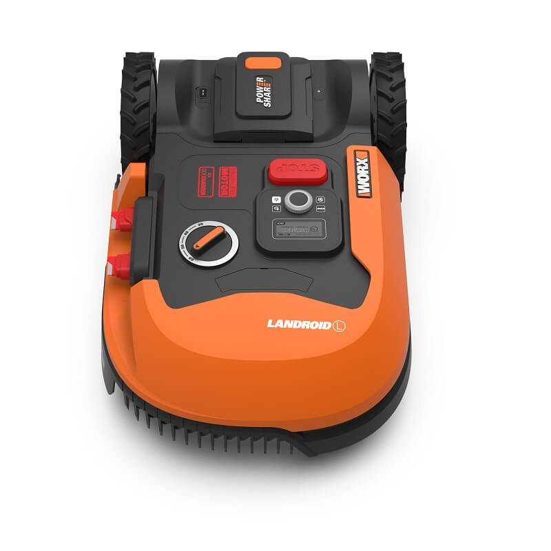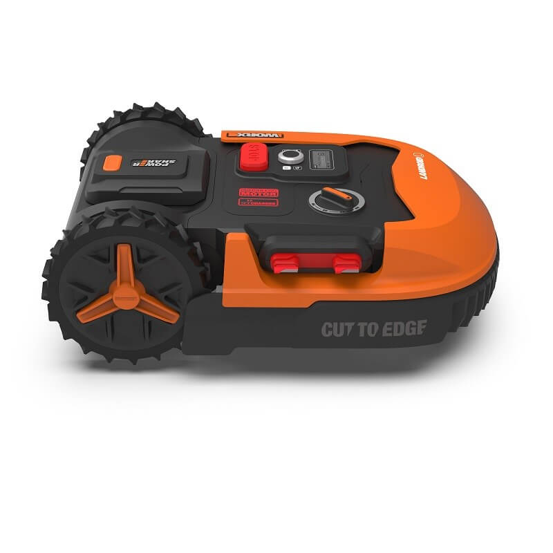 En plus, les roues du Worx Landroid WR147E sont assez spéciales. Les roues arrière sont assez grandes (22,5 cm) et servent dans ce cas à augmenter la traction du robot tondeuse. Les roues avant du Landroid WK147E en revanche sont pivotantes et c’est ce qui lui permet de circuler plus aisément sur des terrains compliqués ou pentus.